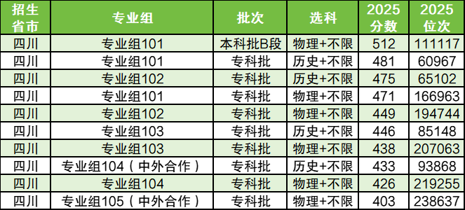2025年成都航空职业技术大学在四川省内招本科生、专科生,本科最低分为512分、最低分专业组为101组(物理类),专科最低分为403分、最低分专业组为105组(物理类)。结合批次线来看,考生成绩超本科线74分可上新大学本科、超专科线253分可上新大学专科。