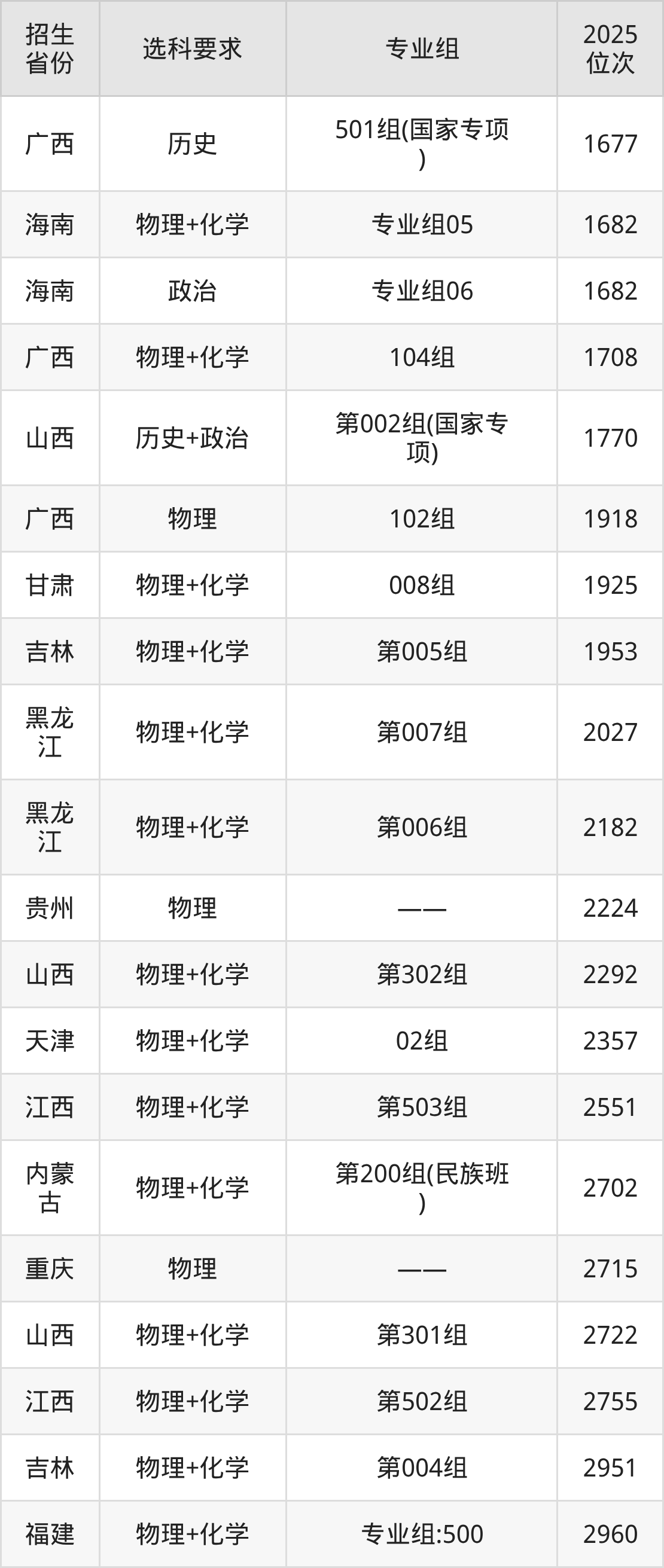 中山大学2025年在全国各省的位次差异较大,最高位次是143位(海南)、最低位次是18242位(河南物理类)。各省具体位次请看下图: