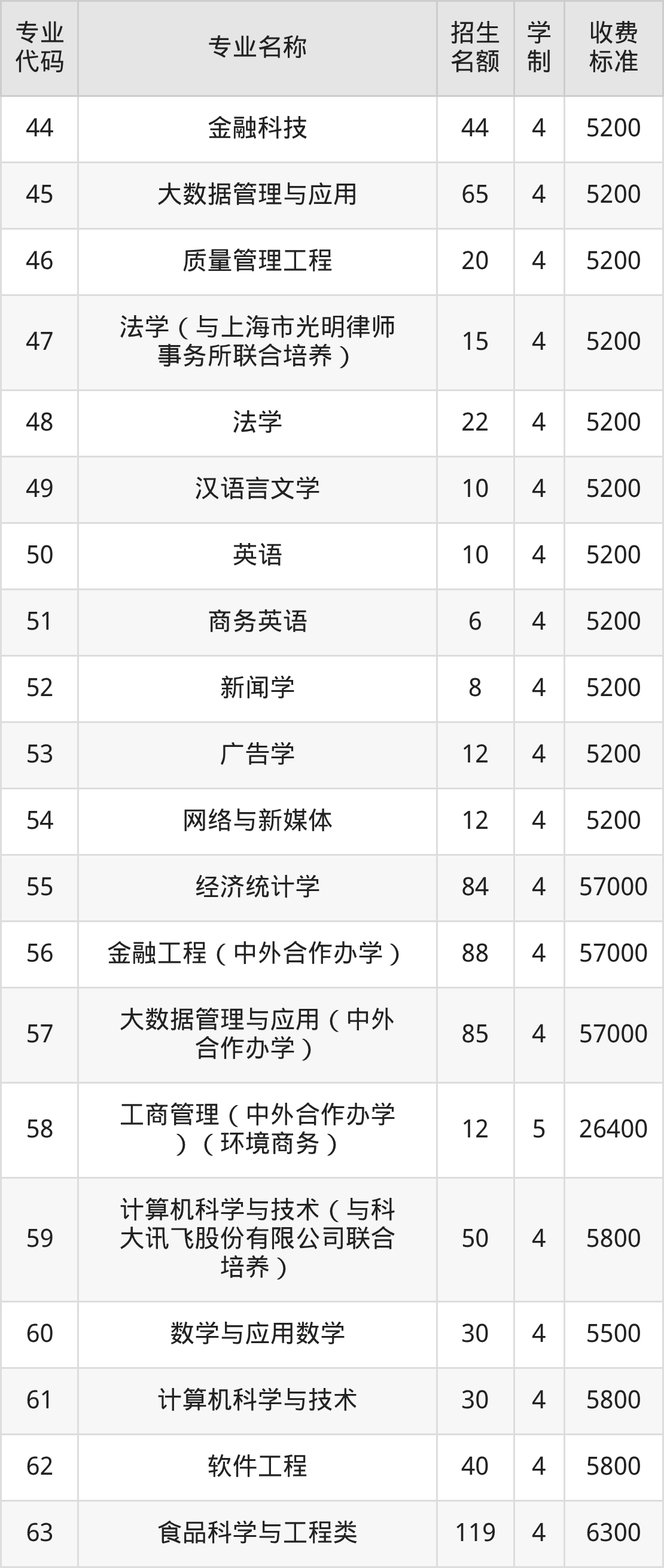 | 专业 代码 | 专业名称 | 招生 名额 | 学 制 | 收费 标准 |