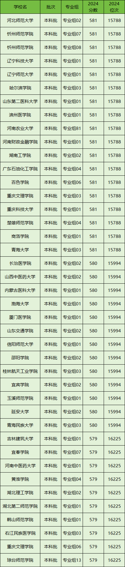 物理组2024年分数线刚好为580分的有武汉理工大学,另外还能上的有天津工业大学、上海第二工业大学和成都医学院,2024年最低均为579分。
