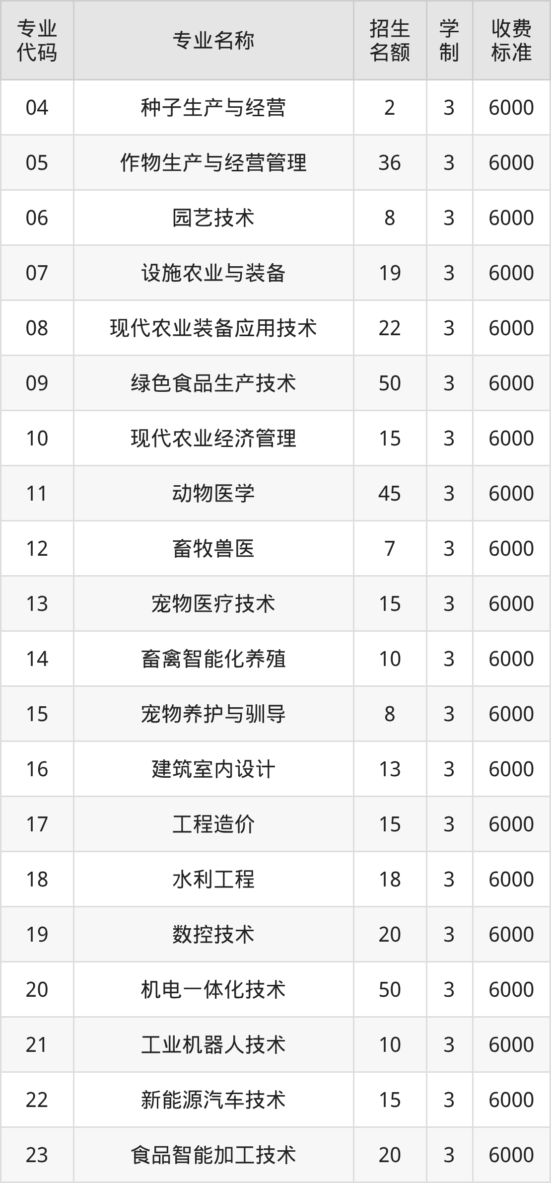 | 03 | 园艺技术 | 7 | 3 | 6000 |