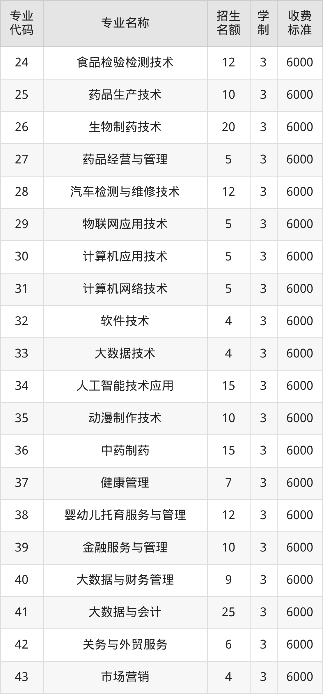 | 23 | 生物制药技术 | 10 | 3 | 6000 |