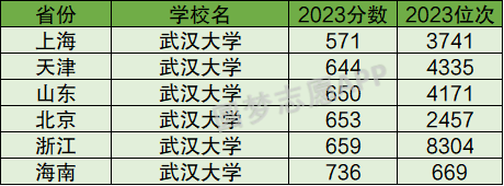 以下为武汉大学2023年全国各地分数线,供各位想要报考武汉大学的同学参考。