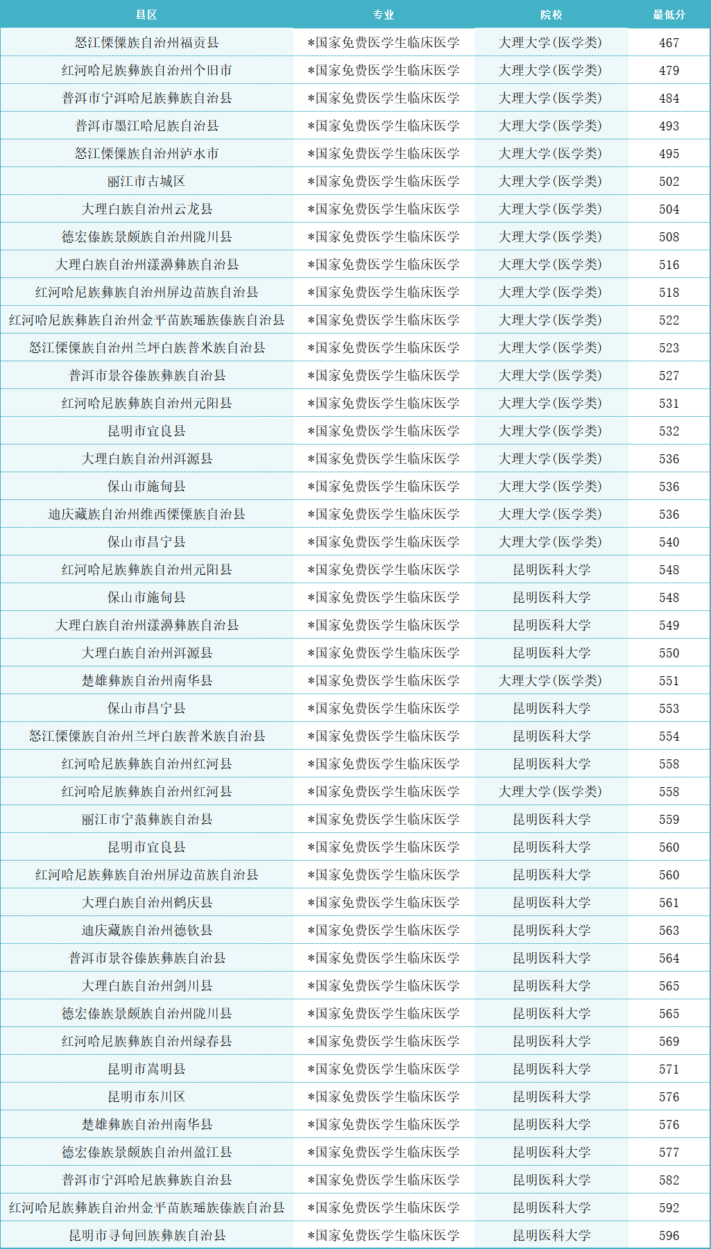 | 临沧市永德县 | 云南中医药大学 | 561 |