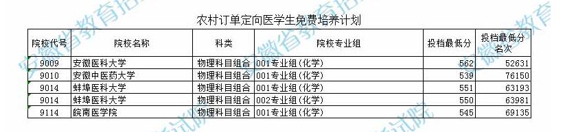 2024年安徽本科提前批定向医学生投档情况表显示,招收定向医学生的院校有4所,全为物理类招生。