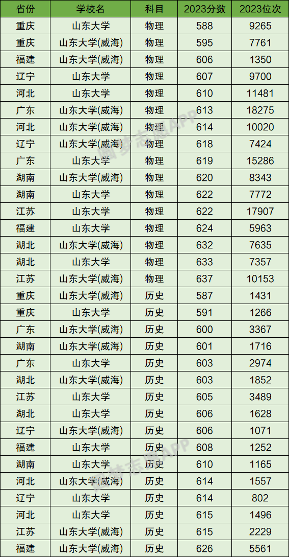 | 云南 | 山东大学 | 文 | 618 | 603 |