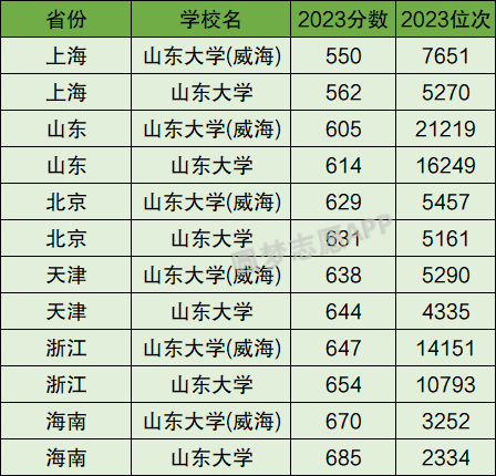 以下为山东大学2023年全国各地分数线,供各位想要报考山东大学的同学参考。