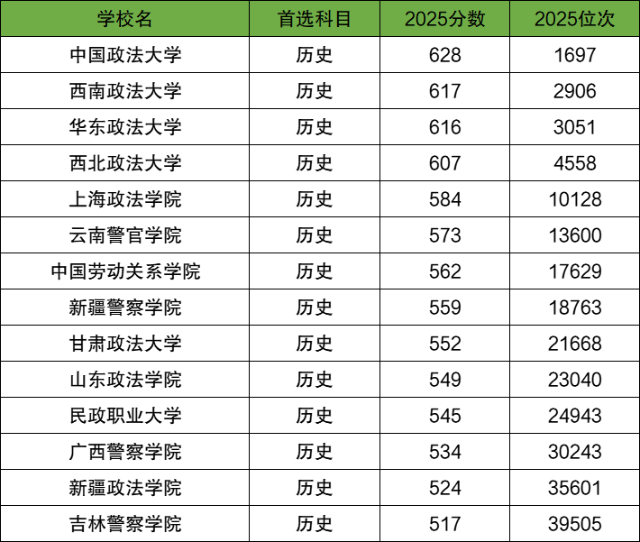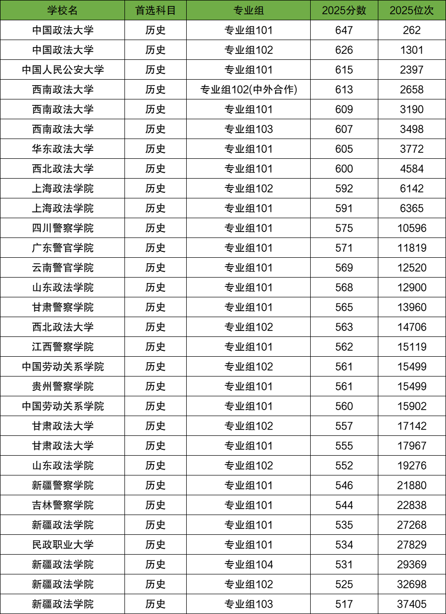 全国政法类大学2025年在四川历史类录取分数线最高的院校专业组是中国政法大学(专业组101),最低投档分647分,最低位次为262名。