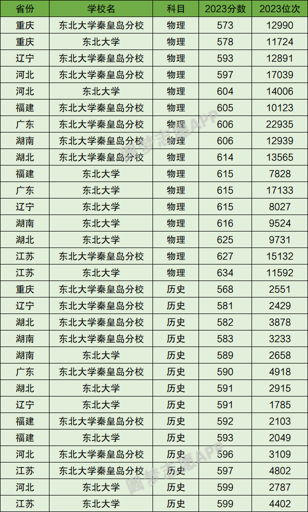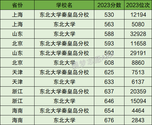 以下为东北大学2023年全国各地分数线,供各位想要报考东北大学的同学参考。