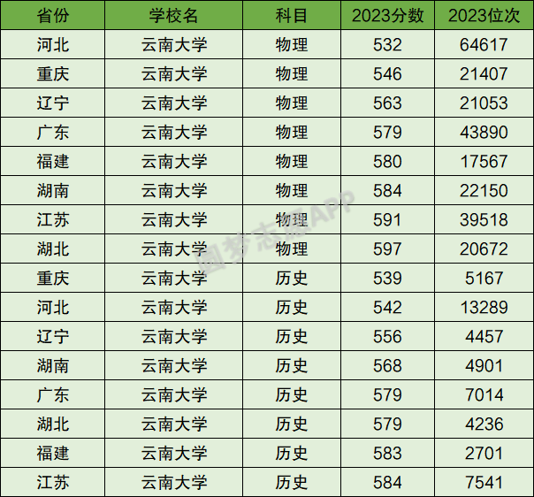 以下为云南大学2023年全国各地分数线,供各位想要报考云南大学的同学参考。