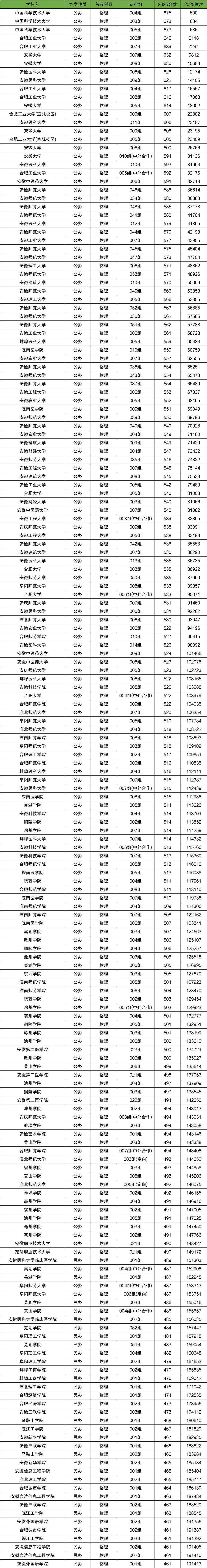 而2025年安徽物理类本科批中收分最低的是安徽外国语学院001组、安徽文达信息工程学院002组等6个院校专业组,2025年的分数线均为461分,最低位次为191413位。