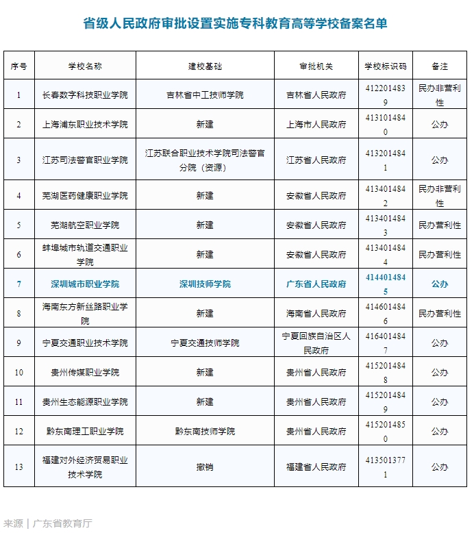 广东:新增深圳城市职业学院