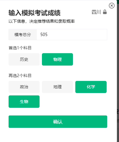下载圆梦志愿APP后,打开圆梦志愿APP。首先需要输入自己的分数、地区、选考科目。