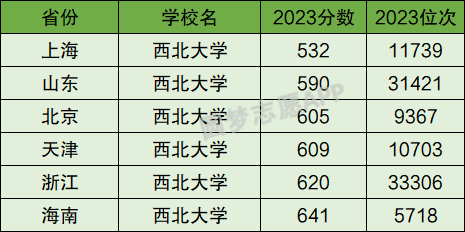 以下为西北大学2023年全国各地分数线,供各位想要报考西北大学的同学参考。