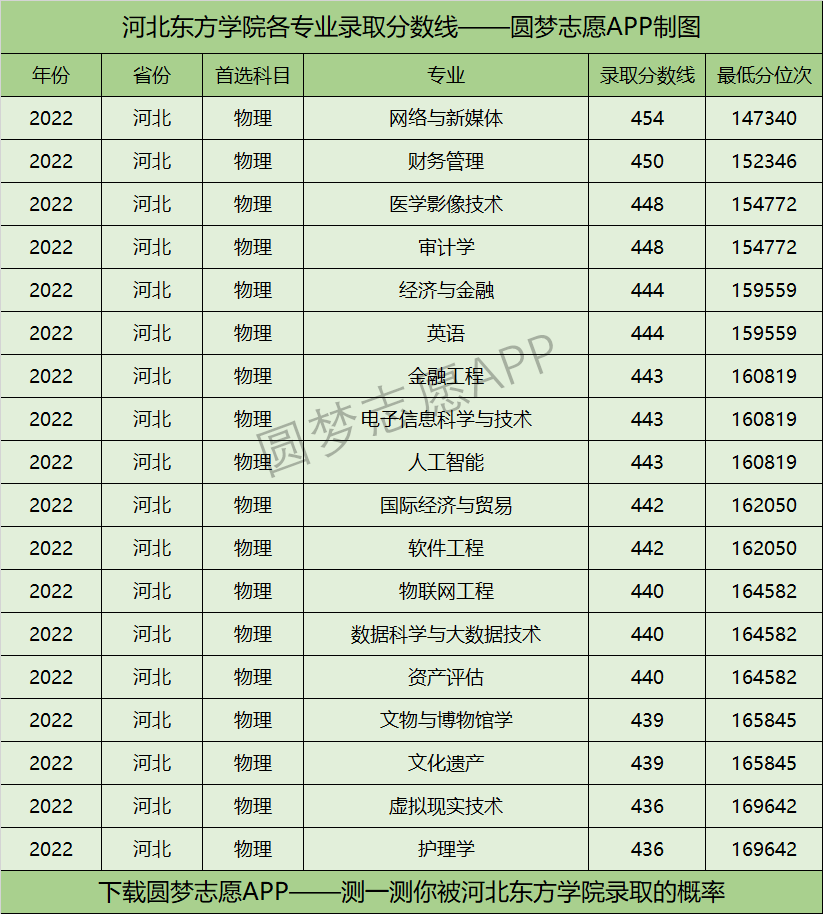 河北东方学院各专业录取分数线2022年是多少分?河北东方学院的最低分位次在全省排名多少?