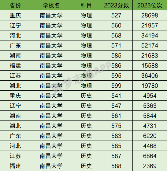 以下为南昌大学2023年全国各地分数线,供各位想要报考南昌大学的同学参考。