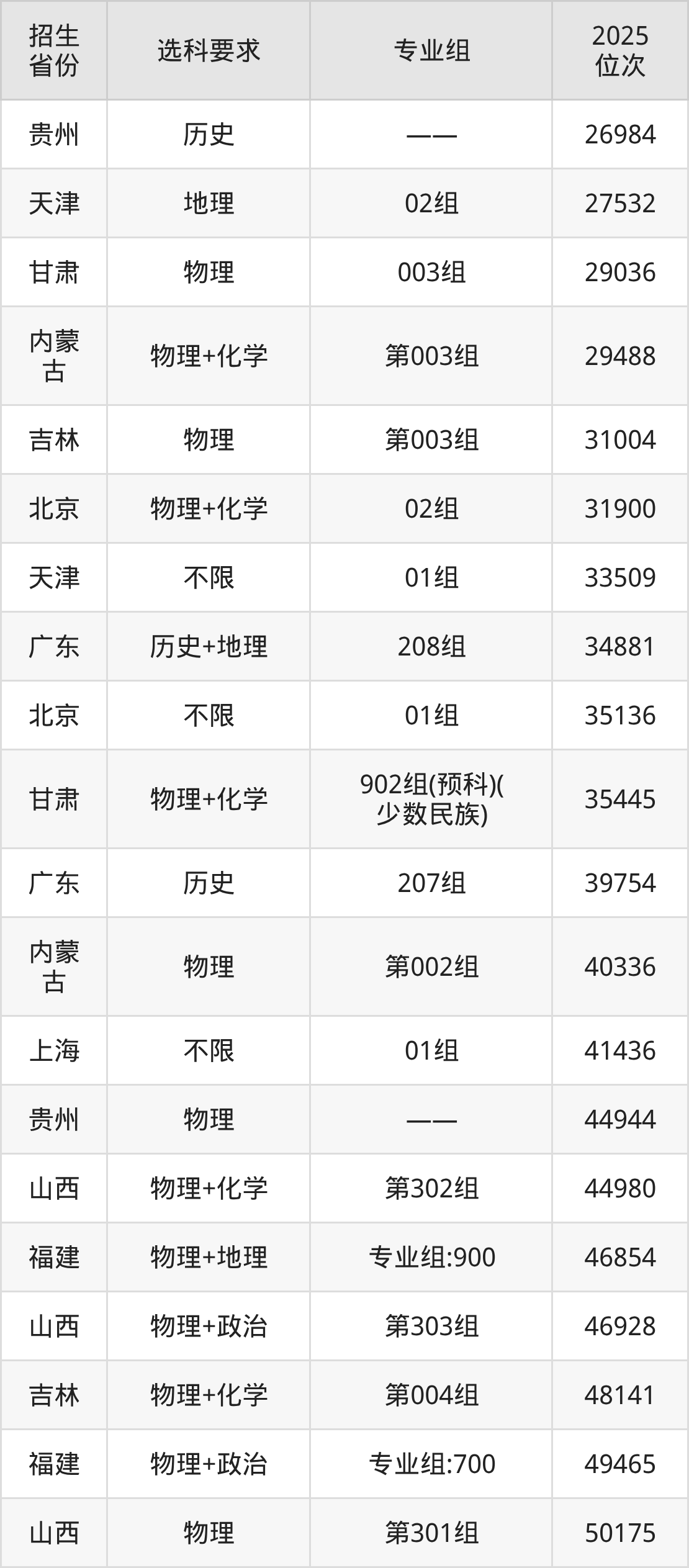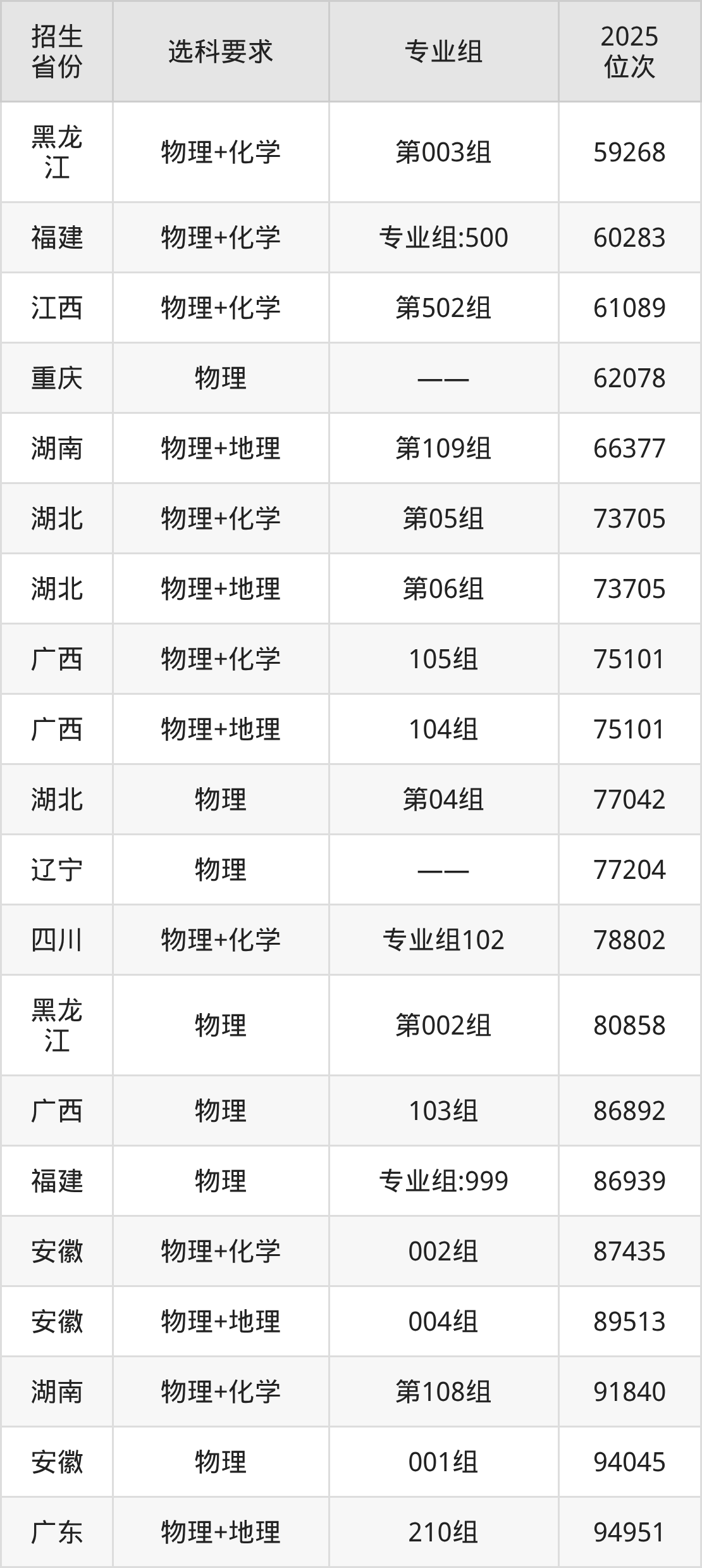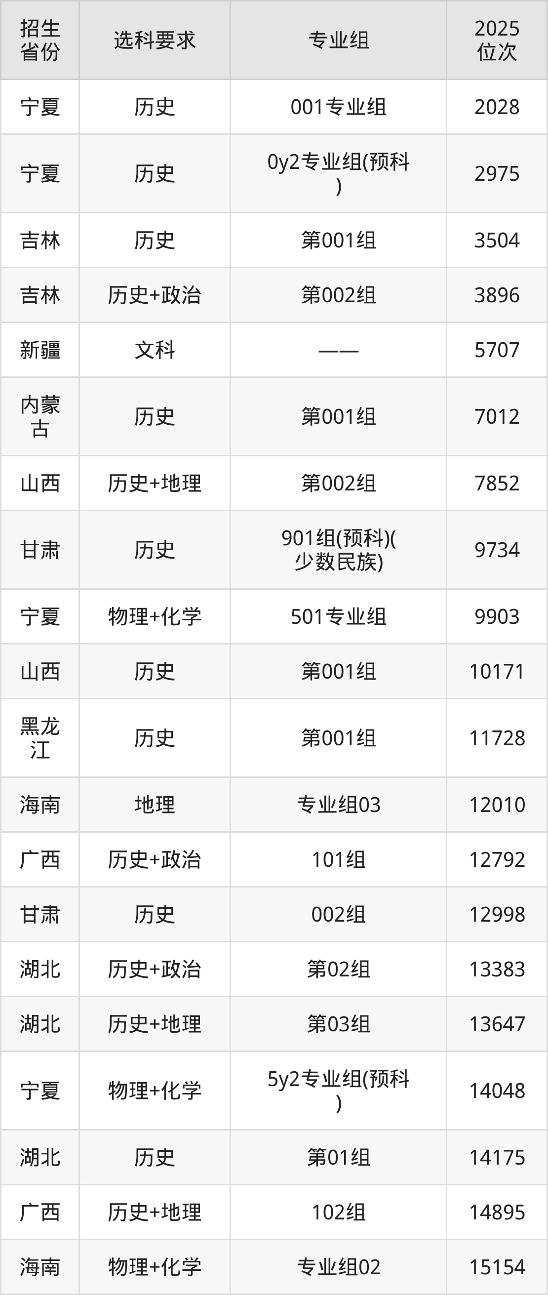 陕西理工大学2025年在全国各省的位次差异较大,最高位次是2028位(宁夏历史类)、最低位次是203899位(河南物理类)。各省具体位次请看下图: