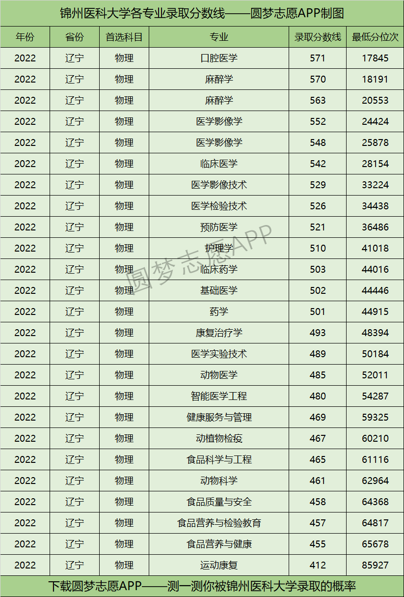 锦州医科大学各专业录取分数线2022年是多少分?锦州医科大学的最低分位次在全省排名多少?