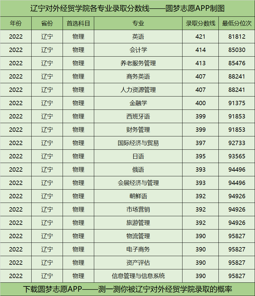 辽宁对外经贸学院各专业录取分数线2022年是多少分?辽宁对外经贸学院的最低分位次在全省排名多少?