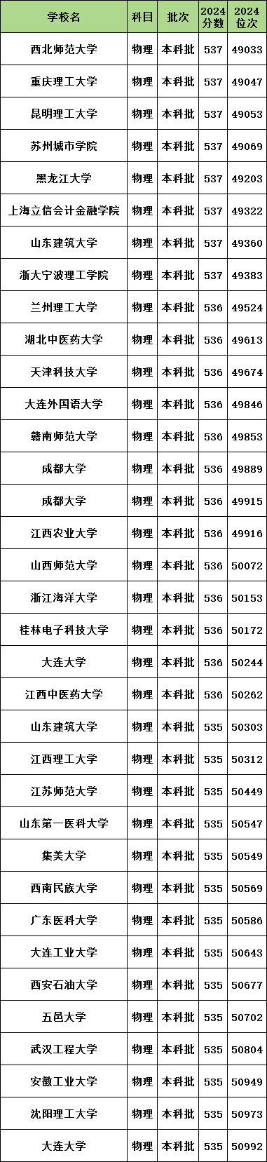 江西高考5万名左右(49000~51000名)能报考的大学名单一览表(物理类):