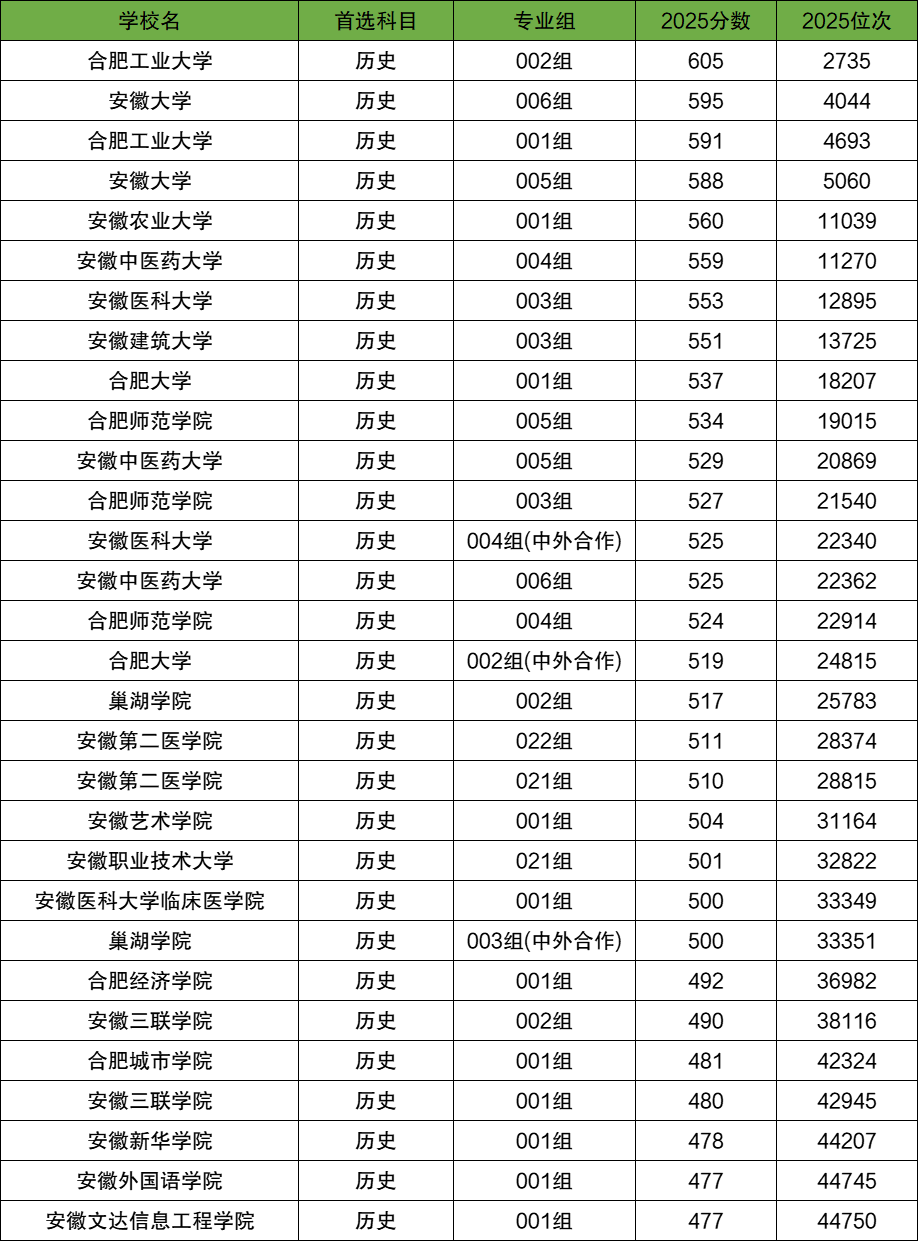 2025年合肥本科各大学专业组录取分数线(历史类):