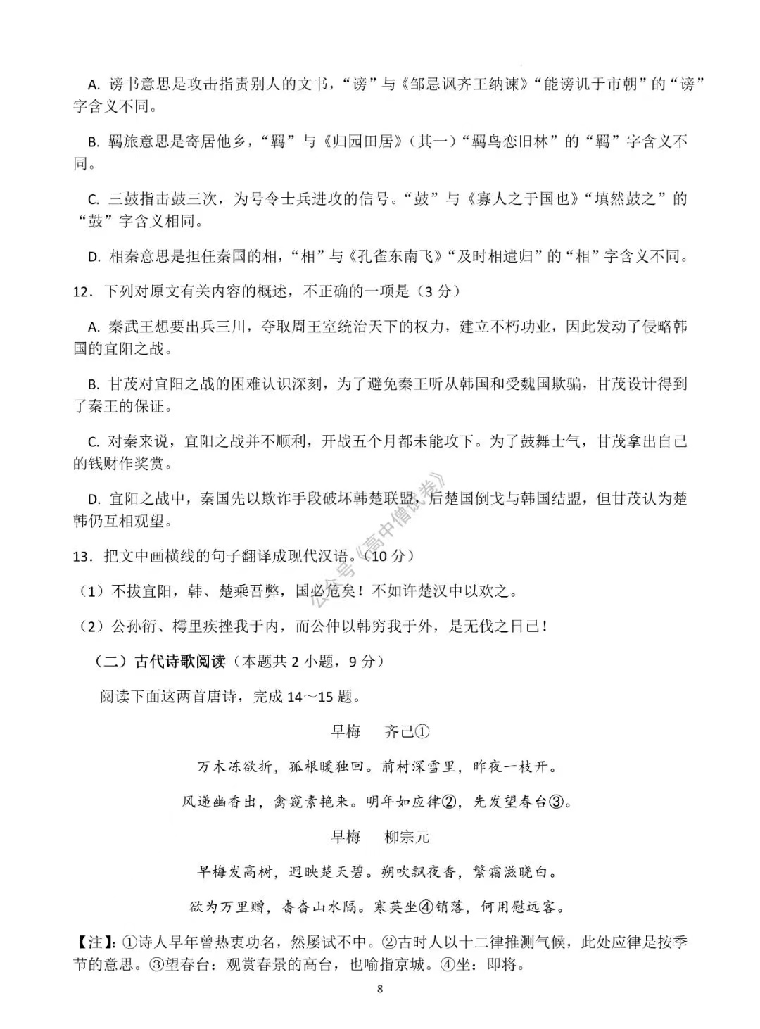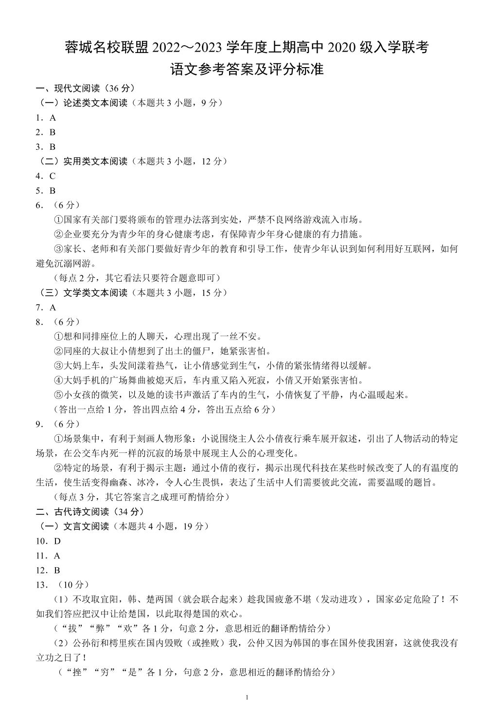 二、2023成都蓉城名校联盟联考语文试题答案解析