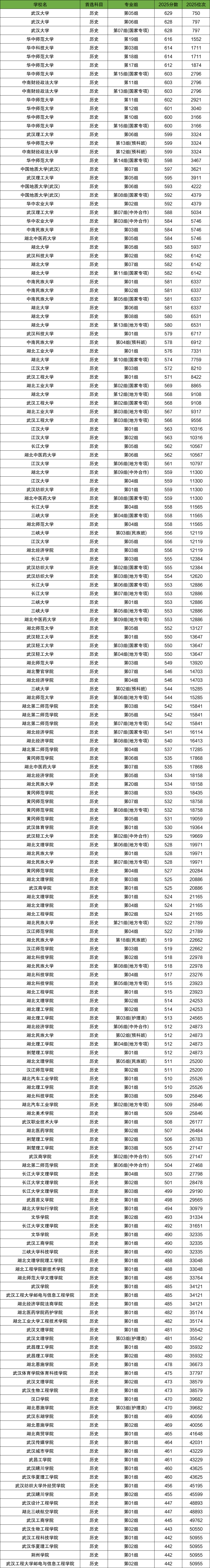 湖北各高校物理类录取分数线范围在442分~629分之间,即湖北历史类考生高考上了本科线就有机会被省内本科高校录取。
