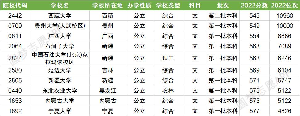 根据圆梦志愿APP查询的招录数据可知,2022年全国211大学在贵州省文科分数线最低的十所211大学如下: