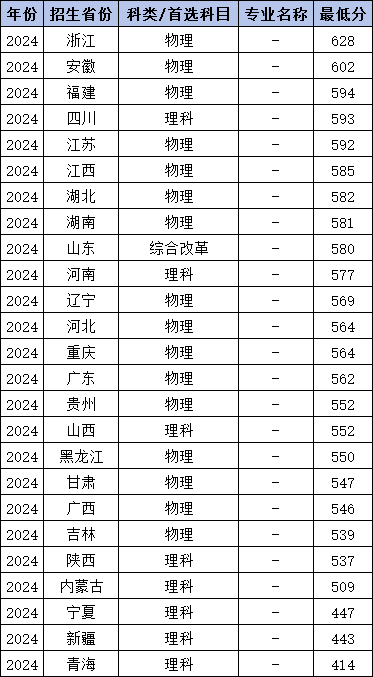 2024年东华大学在全国25个省(市、区)实施高校专项计划招生,录取分数线范围为414分到628分,收分最低是青海理科、收分最高在浙江。下面是东华大学高校专项计划各省最低分汇总: