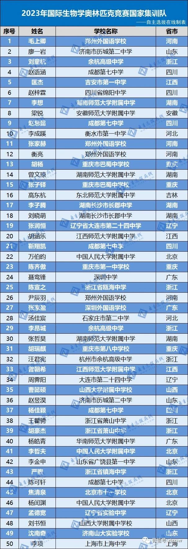 能够进入国家集训队的同学其实都是在五大学科奥林匹克竞赛(数学、物理、化学、生物、信息学)获得国家一等奖、二等奖和三等奖的考生,自然也具有保送的资格,本文就带来五大学科竞赛国家集训队名单,供参考。