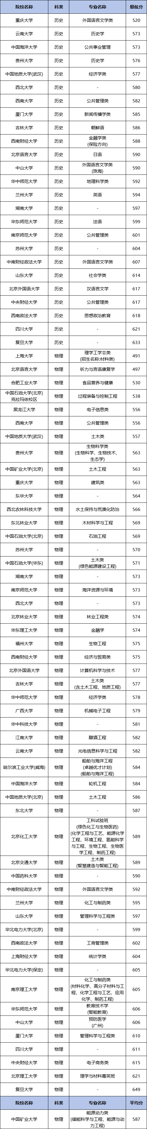 历史类分数最低为重庆大学的520分,最高为复旦大学的633分。也就是说在河北省历史类类考生最低520分,就能报考高校专项计划并且有把握被录取。