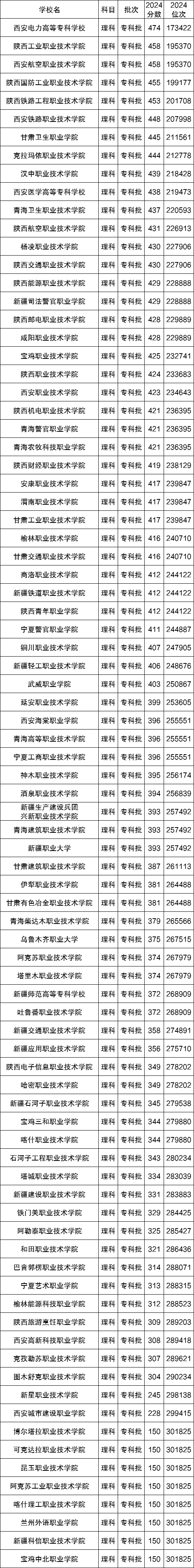下面是2024年各西北地区的高职专科院校在四川省理科的录取分数线