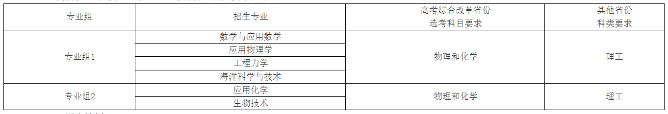 专业组1:数学与应用数学、应用物理学、工程力学、海洋科学与技术