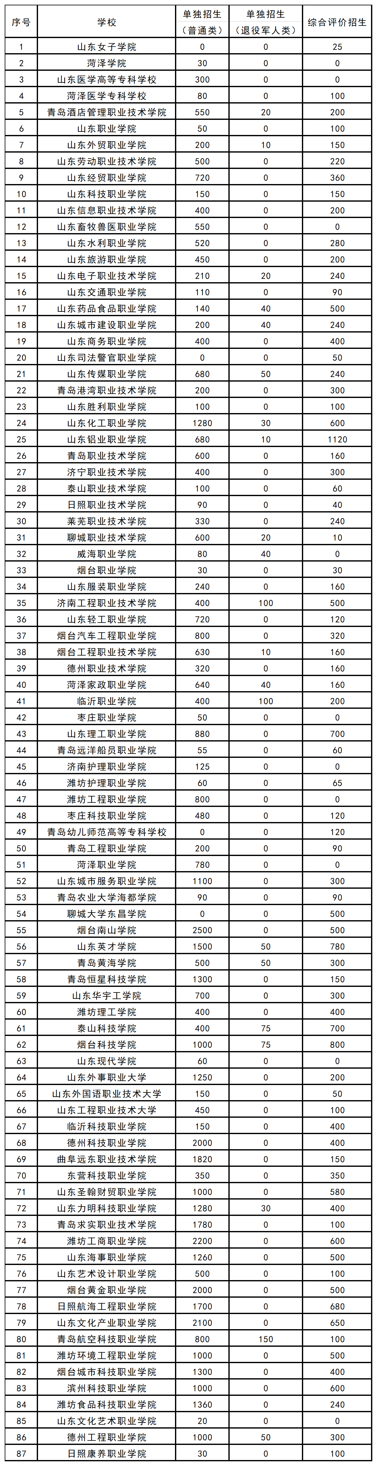 2025年山东省单招和综合评价招生院校如下: