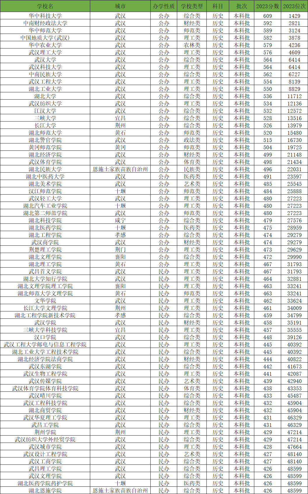 湖北历史类考生想上本科大学至少需要426分,想上公办本科大学需要467分。