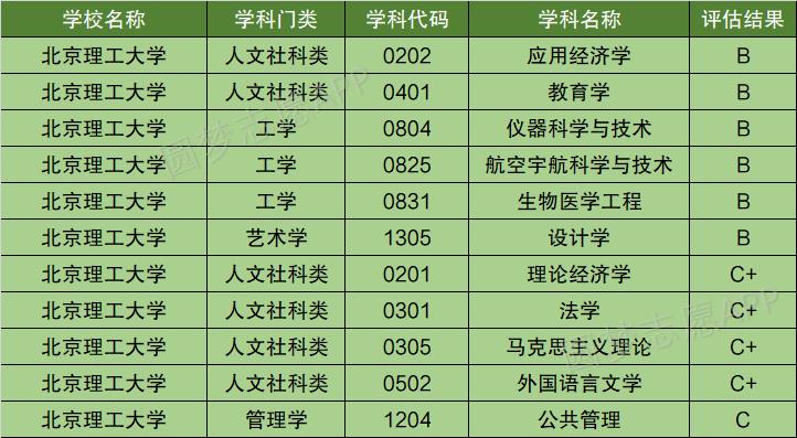 以下为北京理工大学其余学科评估排名结果