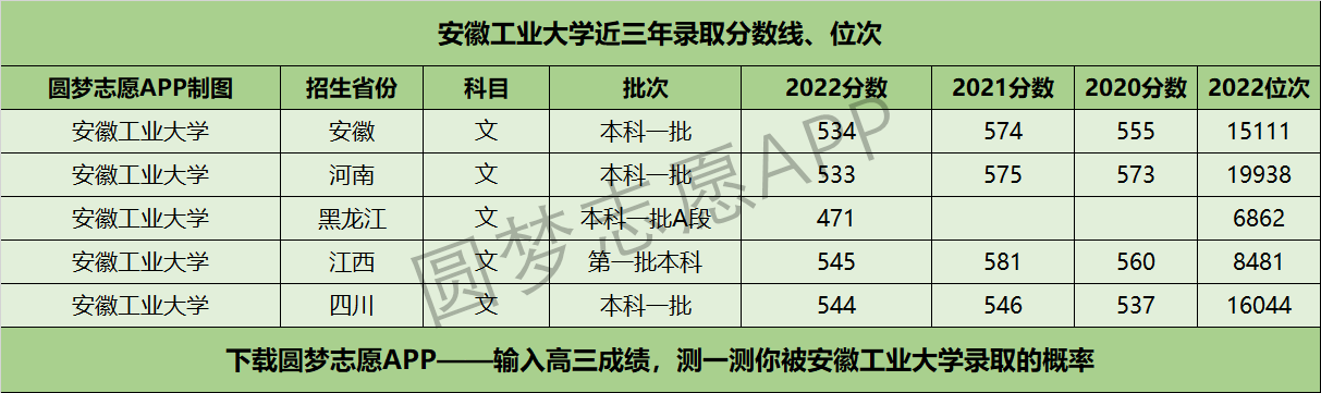 二、安徽工业大学近三年录取分数线及位次【文科版】