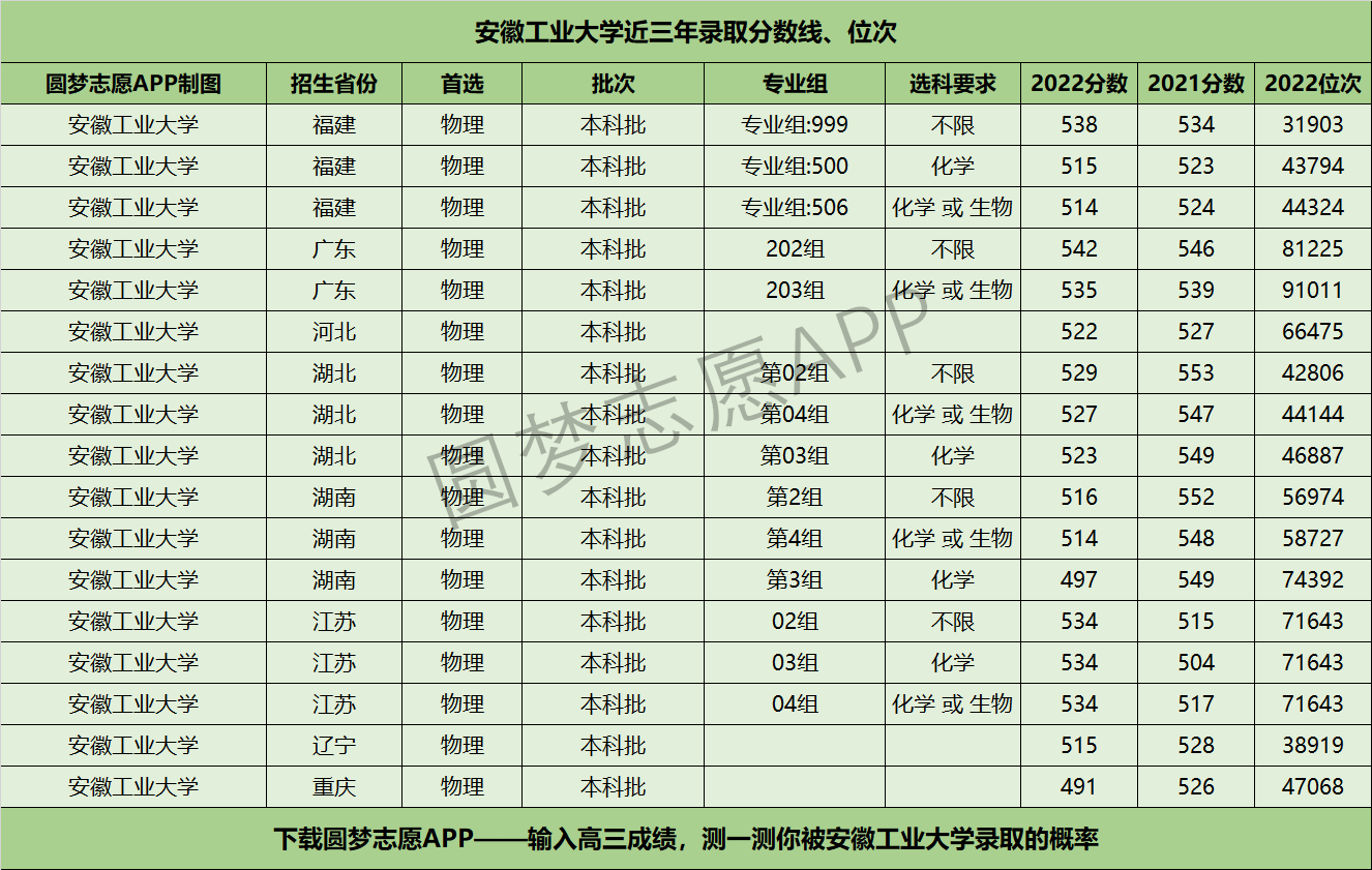 三、安徽工业大学近三年录取分数线及位次【首选物理版】