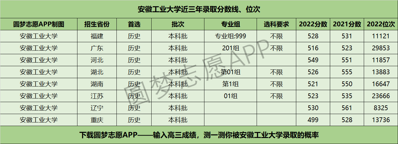 四、安徽工业大学近三年录取分数线及位次【首选历史版】
