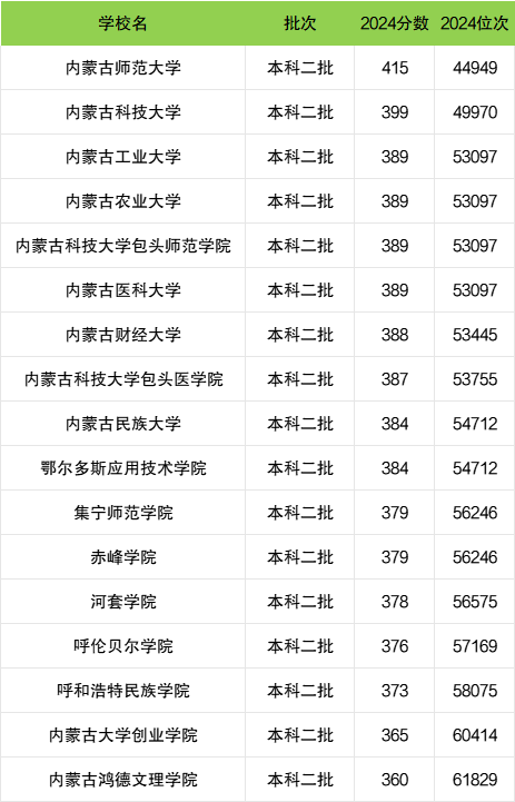 注:2024年内蒙古理科一本线471分,理科二本线360分。