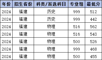 2024年福建医科大学地方专项计划在福建录取最低分历史类为442分、物理类为455分。