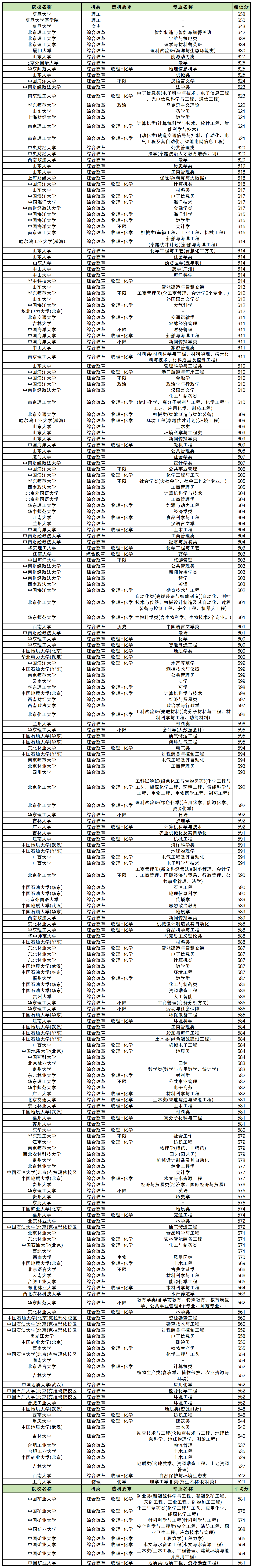 复旦大学医学院(650分)、复旦大学(文史643分)、北京理工大学(智能制造与智能车辆菁英班642分)、北京理工大学(宇航与机电类638分)、北京理工大学(理学与材料菁英班634分)。