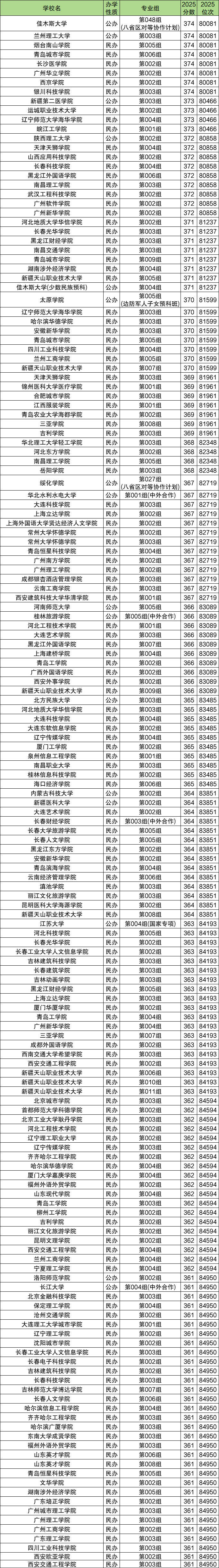 8-万8.5万名中最低位次对应的院校专业组是东南大学成贤学院第003组、青岛恒星科技学院第005组、广州城市理工学院第003组等32个,最低录取位次为84950位,位次对应分数为361分。