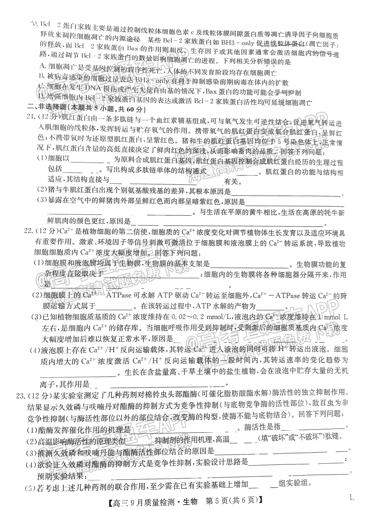 2023河南九师联盟高三9月联考生物试题如下: