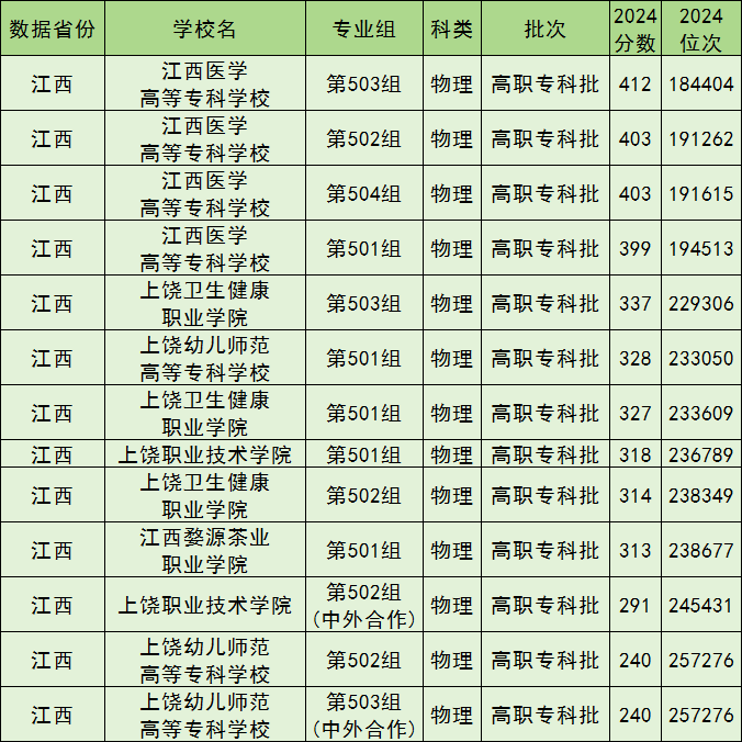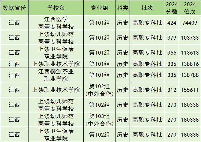 按照上饶市所有公办大专院校2024年在江西省内录取分数线高低排名,为大家整理以下内容。