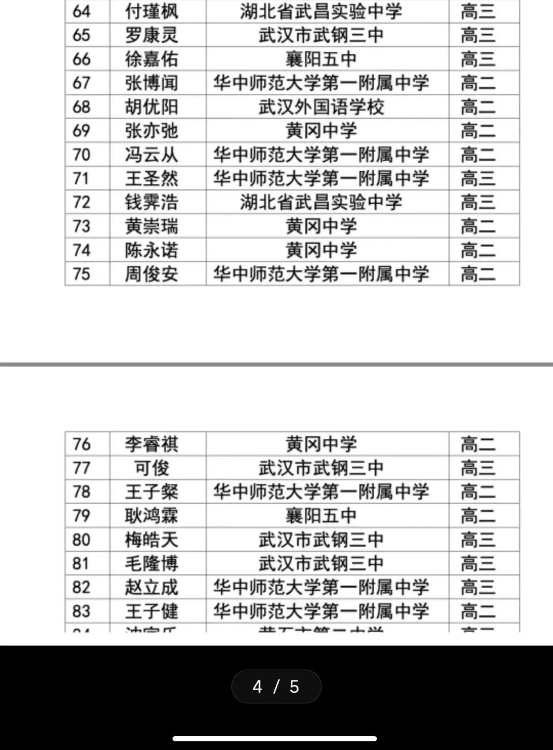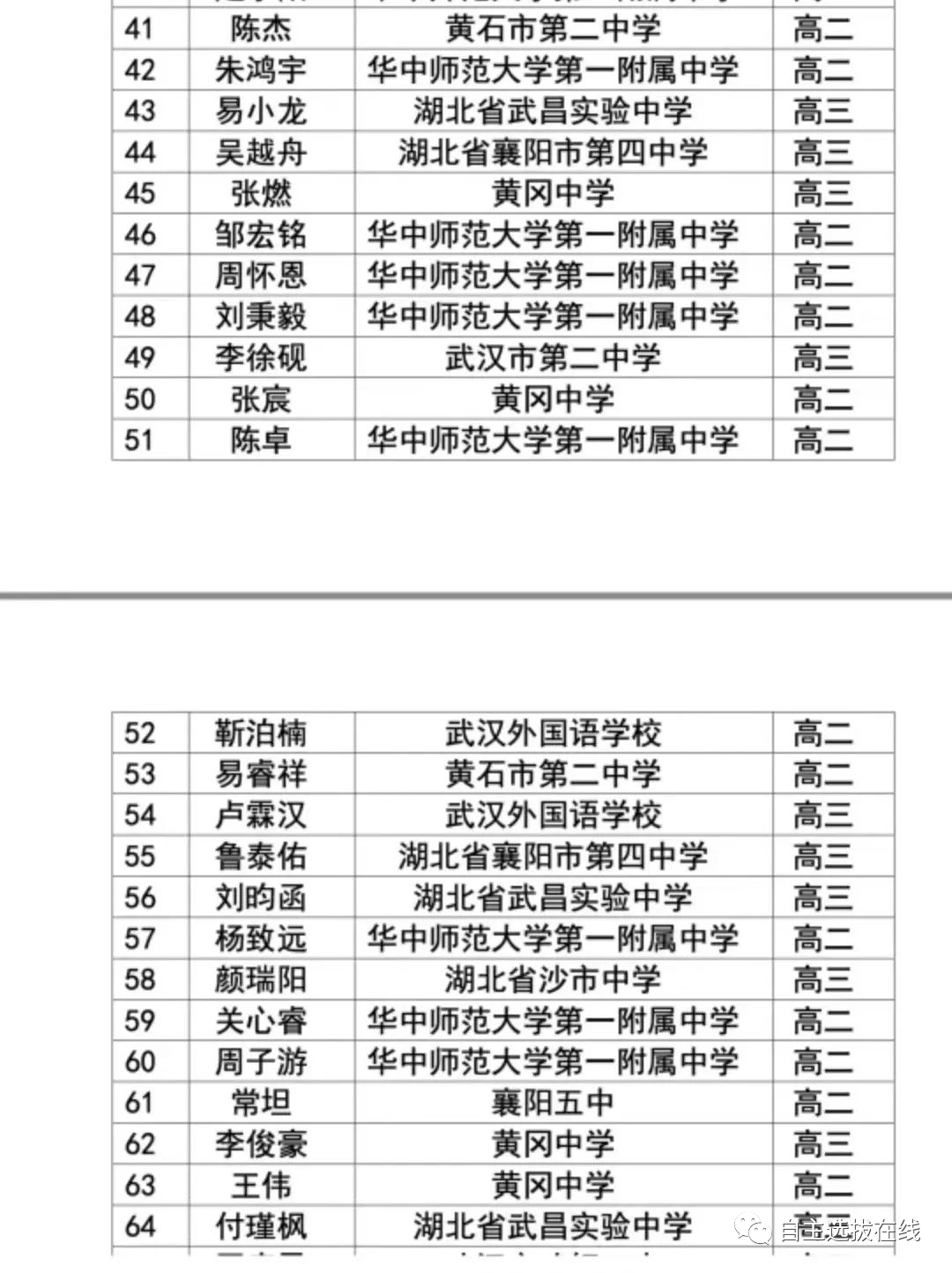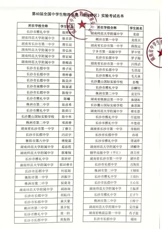 按照全国竞委及湖北省竞委有关评奖条例,决定以下107名同学获得湖北省中学生物理竞赛一等奖,其中前30名同学作为湖北省选手参加第40届全国中学生物理竞赛决赛。第40届全国物理竞赛湖北赛区一等奖及省队名单如下:
