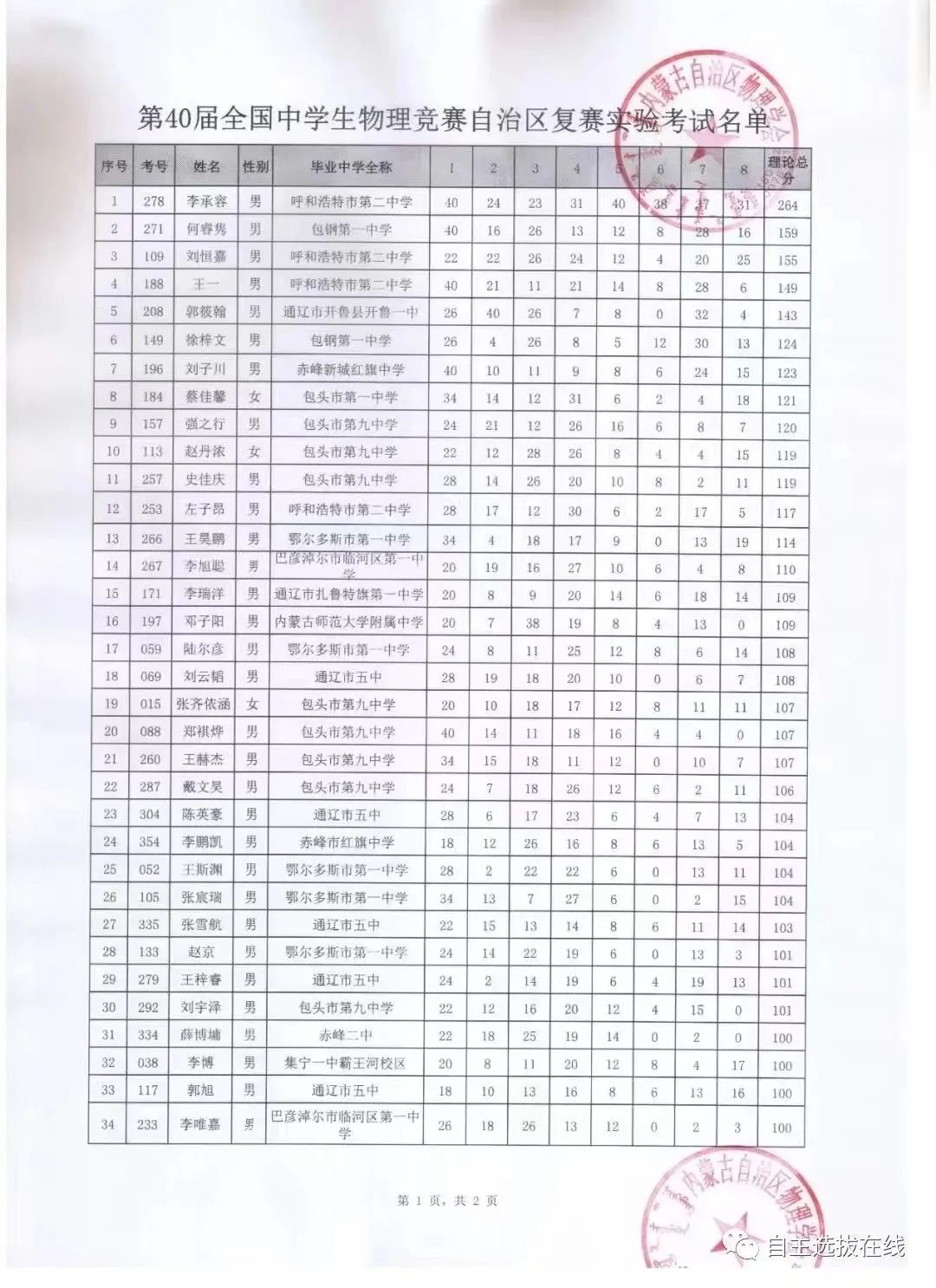 截至目前,2023年物理竞赛复赛已有内蒙古公布省一省二省三完整名单;山东、北京、湖北、内蒙古、贵州、河北、河南、黑龙江、湖北等省市省队省一获奖名单公布;还有湖南、安徽等省市可以查询成绩!以下是小编为大家整理的部分省份物理竞赛获奖名单,供查看。