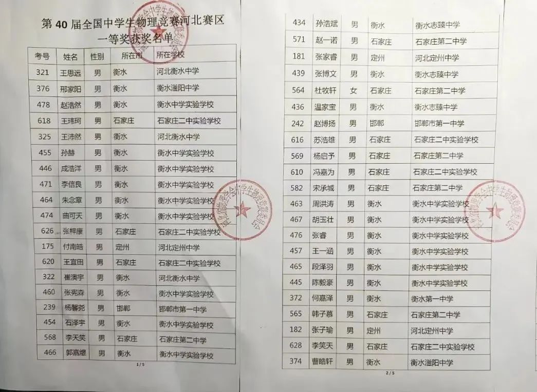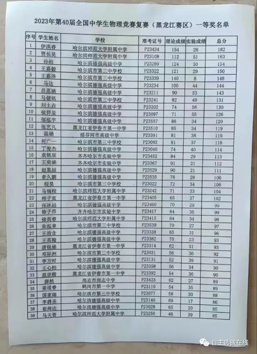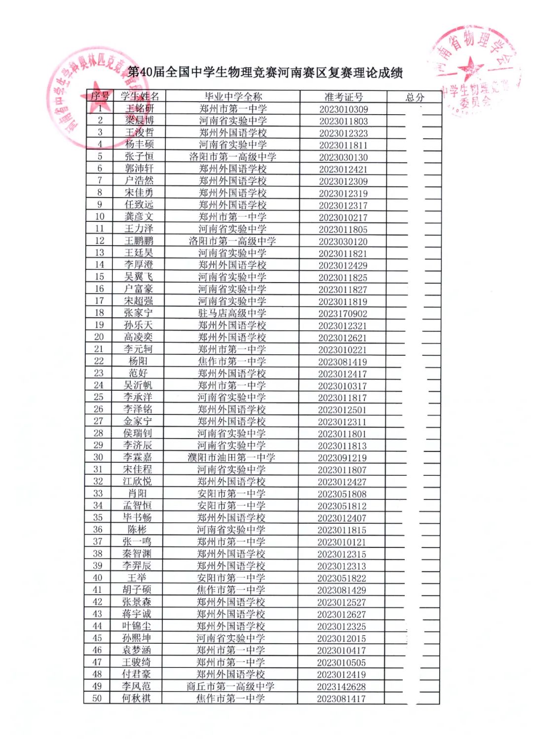 一、2023年第40届全国高中物理竞赛获奖名单公示