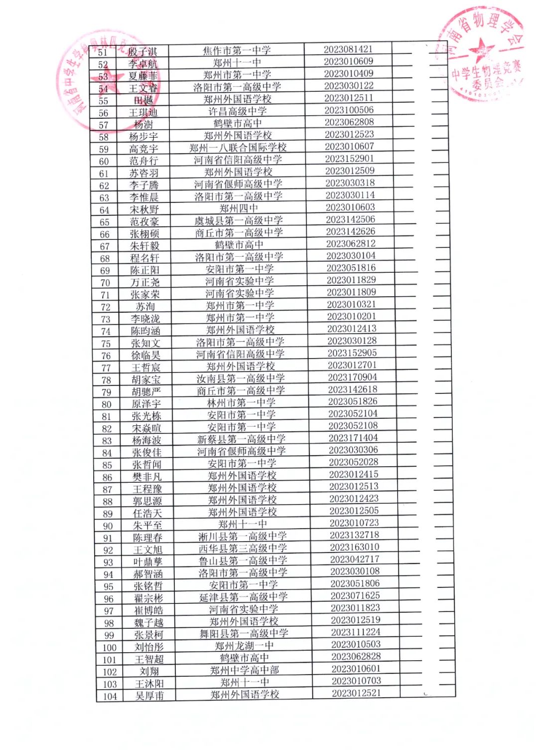 河南省省一名单,名单前98名应为省一获奖同学,前21名应为决赛代表队成员。