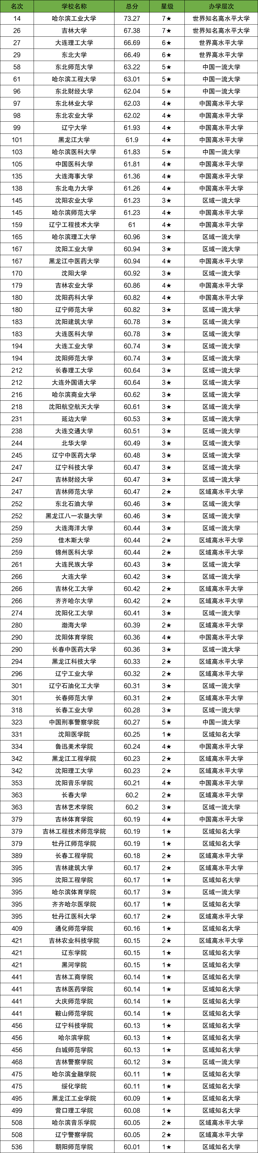 一、东北三省的所有大学排名汇总